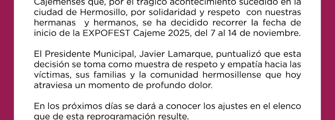 RECORREN FECHA DE EXPOFEST CAJEME 2025