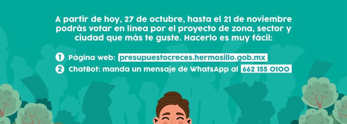 Ciudadanas y ciudadanos mayores de edad residentes del municipio de Hermosillo ya pueden votar en modalidad no presencial en el Presupuesto CRECES 2025, con el que se definirán a los proyectos de obras a ejecutarse el próximo año con una Read more…